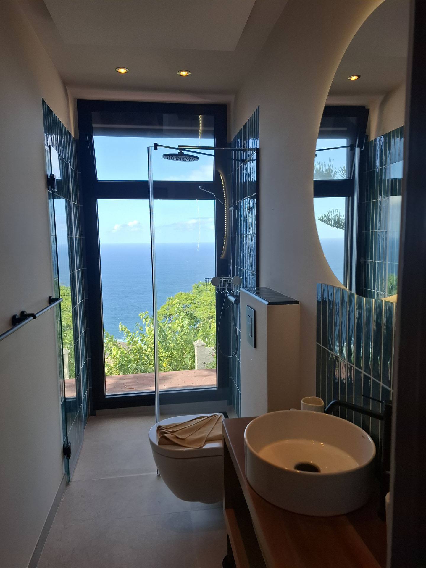 Von dem geräumigen Badezimmer mit freistehender Badewanne und Dusche genießen Sie die malerische Aussicht. Haartrockner, Handtücher und Bademäntel sind ebenfalls vorhanden. Die Küche ist voll eingerichtet und verfügt über ein 4 Platten Cerankochfeld, Mikrowellenherd, Geschirrspüler, Nespresso Kaffeemaschine, Kühlschrank, Toaster und alles was man im Urlaub braucht.